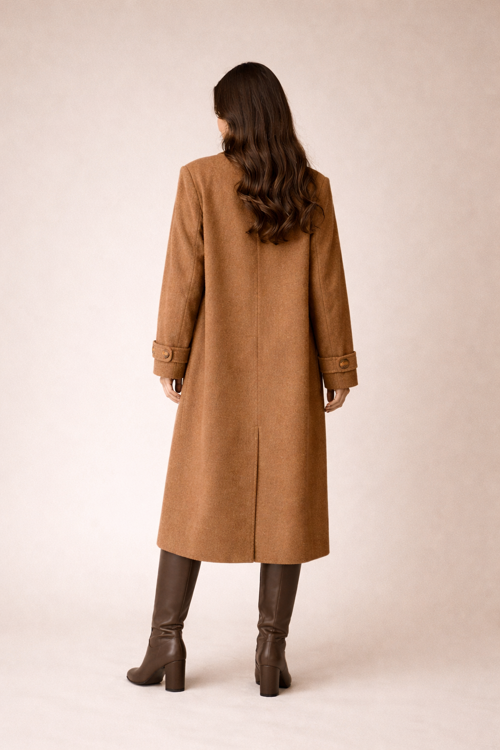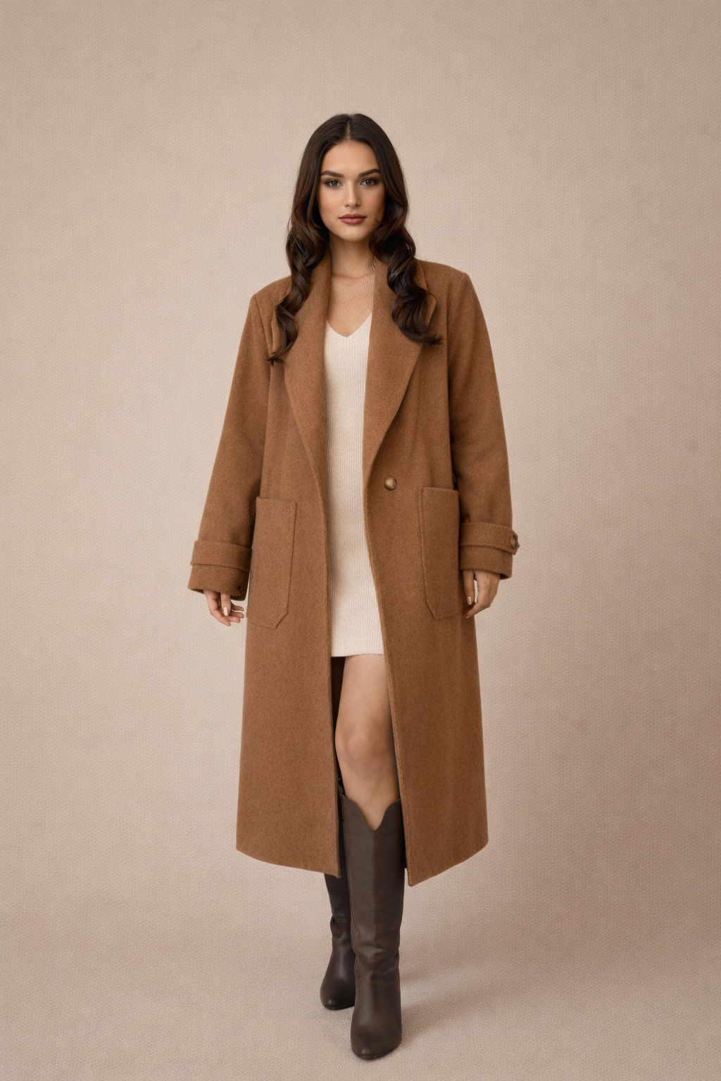 Soğuk havalarda rahatça giyilebilecek, sade ve düzgün kesimli bir uzun kaşe kaban. Diz altına uzanan boyu sayesinde hem sıcak tutar hem de kombini daha toplu gösterir. Düz formu ve klasik yaka detayı, günlük kullanımda da daha şık kombinlerde de rahatlıkla tercih edilmesini sağlar.